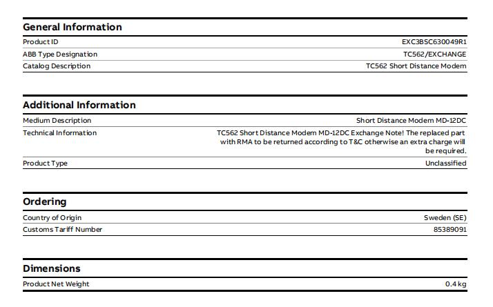 TC562 3BSC630049R1 ABB Short Distance Modem Images |